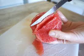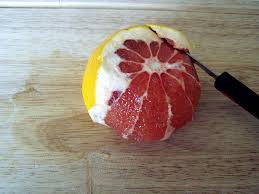 Peler les pamplemousses à vif = retirer zeste + ziste ( la partie blanche).