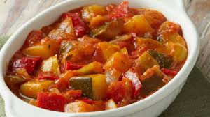 Dans une poêle ou casserole, chauffer l’huile. Y faire revenir poivrons + aubergine + courgette + ail 15 mn environ en remuant souvent.