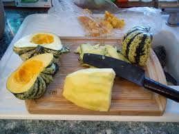 Peler et épépiner le Patidou. Découper la pulpe en dés. Les plonger 15 mn dans l’eau bouillante ……….. Bien les égoutter.