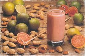 Passer au mixer goyaves + jus de citron + poudre d’amandes + sucre roux + 4 verres d’eau.