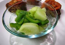 Dans un saladier, mettre sel + jus de citron. Mélanger 3 à 4 mn que le sel soit bien dissous. Ajouter concombres + poivrons. Bien mélanger 2 à 3 mn.