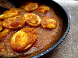 Ecaler les oeufs ( = retirer leur coquille). Couper les oeufs en 2 et les ajouter dans la sauce. Laisser doucement réchauffer le tout 3 à 4 mn.