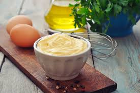 Préparer la mayonnaise: – Ecraser en purée poire ou mangue.