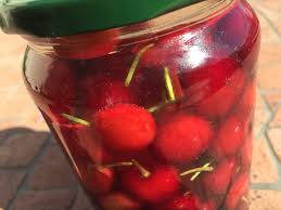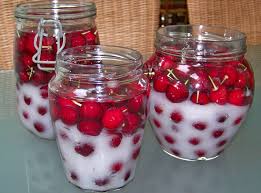 Dans les bocaux, disposer successivement 1 couche de cerises puis 1 couche de sucre puis 1 couche de cerises + 1 couche de sucre etc …. jusqu’à épuisement des ingrédients.