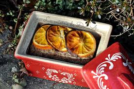 Couper l’orange en tranches mince. Vous pouvez les disposer sur la terrine avant la cuisson ou après cuisson pour les manger fraîches.
