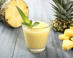 Dans une carafe ou au blender ( mixer), bien mélanger jus d’ananas + lait concentré + essence de vanille.
