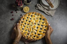 Etaler devant vous le 2ème rouleau de pâte. Y découper des bandes. Disposer ces bandes sur les fruits pour former un quadrillage en laissant un peu déborder la pâte sur le tour.