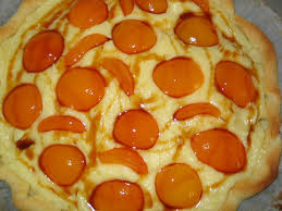 Disposer les oreillons ( demi-abricots) sur le fond de tarte précuit en cercles.