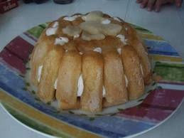 Pendant ce temps, tapisser le fond d’un moule à charlotte, puis le pourtour, avec des biscuits à la cuillère ( en les recoupant au besoin) côté bombé vers l’extérieur.
