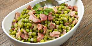 Ajouter petits pois + jambon + 1/2 verre d’eau tiède ( du robinet !) + les coeurs de laitue + sucre en poudre + sel + poivre. Couvrir. Laisser mijoter 25mn et rajouter 1/2 verre d’eau tiède… Prolonger la cuisson à couvert de 20 mn.