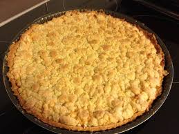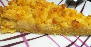 Dans un saladier, travailler 2 mn du bout des doigts reste de beurre + cassonade … Ajouter farine + poudre d’amandes pour obtenir une texture sableuse. Etaler cette préparation sur la compote en une couche épaisse.