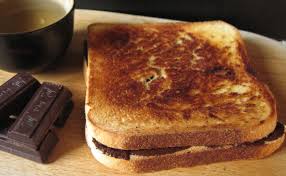 Disposer 4 carrés de chocolat sur 1 des tranches puis la garniture que vous avez choisie.