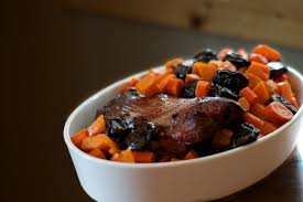 (Facultatif: 12 pruneaux gonflés la veille dans de l’eau froide et dénoyautés ou 125 g de raisins secs gonflés au moins 15 mn dans de l’eau tiède)