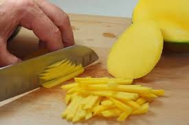 Rincer la mangue. Bien l’égoutter. La sécher dans plusieurs papiers absorbants.