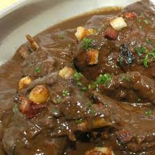 Dans une cocotte, faire dorer oignons hachés + lardons (+ champignons nettoyés et recoupés pour les plus gros)….. Ajouter les morceaux de lièvre + la sauce précédente + sel + poivre + gelée de groseilles et porter à ébullition en mélangeant…. et aussitôt, baisser à feu doux. Couvrir. Laisser doucement mijoter environ 2 heures ( rajouter éventuellement un peu d’eau si la sauce devient trop courte).
