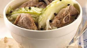 Dans une grande cocotte, alterner 1 couche de chou + 1 couche de viande + poivre + un peu de farine … et recommencer chou + viande + etc … jusqu’à épuisement des ingrédients.