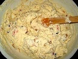 Dans un autre saladier, mélanger fromage blanc égoutté + les 3/4 des dés de fruits confits + raisins égouttés + le 1/3 des amandes effilées + le beurre mou ( non fondu) coupé en noisettes. Bien travailler le tout ……… puis ajouter la crème précédente refroidie et mélanger 3 à 4 mn.