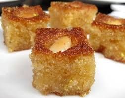 Découper le gâteau en petits carrés ( surmonter chaque petit carré d’1 amande mondée).
