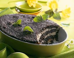 Montage du gâteau: – Dans un moule à manqué ou un plat en verre ou porcelaine, étaler 1/3 du pain blanc au lait ……. Couvrir avec 1/3 de la pâte au pavot……….. Recouvrir d’1/3 du pain gonflé au lait …………… puis 1/3 de pâte au pavot ……. et ainsi jusqu’à épuisement des ingrédients.