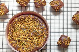 Sortir le gâteau et le parsemer de pistaches hachées. Laisser refroidir avant de déguster.