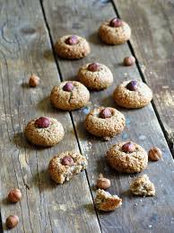 Recouvrir chaque rondelle de pâte de meringue aux noisettes ( le blanc battu).