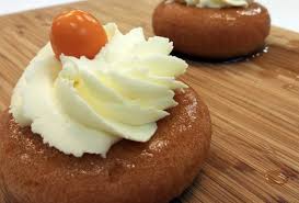 …. Le baba étant cuit, 5 mn après la sortie du four, le démouler et l’arroser aussitôt, par petite quantité, de sirop de café … jusqu’à ce qu’il en soit bien imprégné.