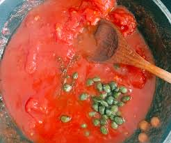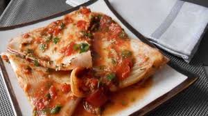 Servir les morceaux de raie nappés de coulis de tomates et parsemés de câpres.