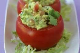 Remplir les tomates de la préparation… Les poser sur un plat de service. Leur remette leurs chapeaux. Les entourer de rondelles d’oeufs durs.