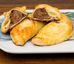 Etaler devant vous les pâtes feuilletées… Y découper des ronds de 15 cm de diamètre….. au centre de chacun, déposer de la préparation à la viande….. Humecter tout le tour du cercle de pâte… Replier le bord de chaque côté de la farce vers le centre et pincer pour former un chausson. Appuyer sur la pâte tout autour pour bien sceller les 2 pâtes entre elles: former ainsi 6 Bridies que vous déposez au fur et à mesure, bien espacés, sur la plaque du four.