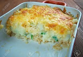Beurrer largement un plat à gratin… Y étaler la préparation de la poêle … Recouvrir du reste de fromage râpé.