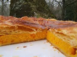 Beurrer et fariner une tourtière ( moule à tarte à bord un peu plus haut). Y disposer 1 des rouleaux de pâte feuilletée en faisant un peu dépasser la pâte du moule……. Placer au frigo.