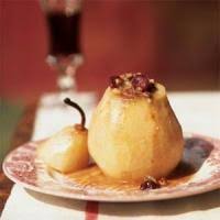 Dans un saladier, mélanger miel + noix + raisins égouttés…….. Remplir les poires de ce mélange.