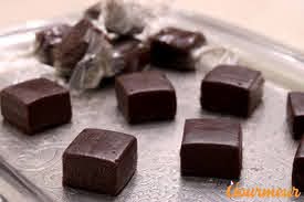 Si vous n’avez qu’un moule carré ou rectangulaire, tracer ( juste dessiner) dans le chocolat encore chaud des petits carrés de 2 cm de côté.