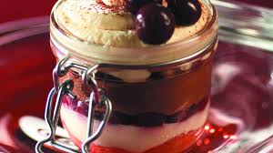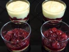 Remplir les verres en alternant couches de crème Chantilly + Pumpernickel + macarons/noisettes + qq cerises griottes…. Recommencer les couches alternées jusqu’à épuisement des ingrédients.