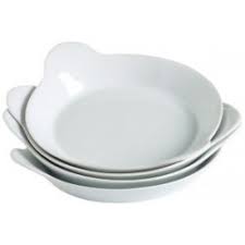 Beurrer largement 4 plats à oeufs en porcelaine.