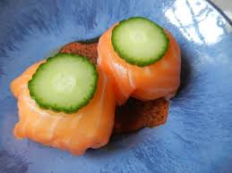 Pendant ce temps: -A l’aide d’une lame bien aiguisée, Découper de fines tranches de saumon d’environ 4 à 5 cm x 4 à 5 cm.