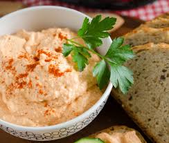 Ajouter crème fraîche + poivrons + moutarde + paprika + carvi. Bien mélanger pour obtenir une préparation homogène.