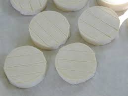 A l’aide d’un emporte-pièce ou bien un verre retourné au col large d’environ 8 cm de diamètre ou un bol retourné, découper 24 cercles ( ou environ 48 carrés ou autres formes de 5 cm de côté). Les mettre de côté. / Traditionnellement, elles sont rondes ou en chaussons//.