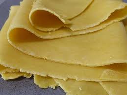 Faire la pâte à ravioles: – Dans un saladier, verser la farine + 1 cuillère à soupe de sel …….. Incorporer 4 oeufs en battant entre chaque …. puis 1 cuillère à soupe d’huile pour obtenir en la travaillant 5 à 7 mn une pâte bien homogène.