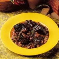 Dans une daubière ou cocotte sur feu vif, faire dorer les cubes de viande de tous côtés ( 5 mn )… .