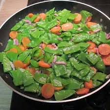 Ajouter carotte + pois gourmands + asperges. Mélanger 3 mn pour attendrir tout juste les légumes.