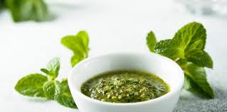 Pendant ce temps, préparer le Pistou de menthe : – Rincer et sécher la menthe…. Détacher les feuilles … Les ciseler finement.
