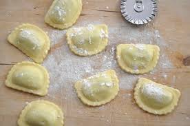 Préparer la pâte à raviolis: – Dans un saladier, bien mélanger la farine + 1 oeuf entier + un peu d’eau au fur et à mesure pour obtenir une pâte un peu dense. La mettre en boule … L’enduire avec l’huile. Placer 30 mn au frigo.