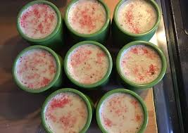Fouetter le reste de crème fraîche en une neige ferme …… Verser dans le riz tiède et mélanger délicatement + eau de rose + jus de citron vert pour obtenir une préparation homogène………………………. Répartir le riz au lait dans des coupes, bols ou grands verres.