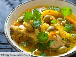 Ajouter citron confit + champignons + cornichons + olives. Mélanger 2 mn… Couvrir. Laisser doucement mijoter 35 mnenviron.