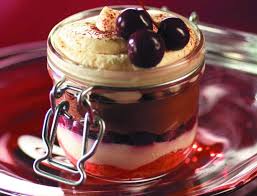 Dans un plat ou des contenants individuels, comme pour un Tiramisu, alterner des couches de pumpernickel au chocolat .. puis fromage blanc .. puis airelles ou cerises. Renouveler les couches jusqu’à épuisement des ingrédients.