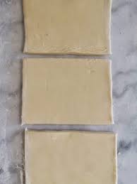 Etaler ou dérouler chaque pâte feuilletée. Y découper des rectangles de 5 cm de large sur 7 cm de long (environ).