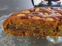 Dans un saladier, mélanger intimement dattes + pistaches + cacahuètes + + poudre d’amande + farine + sucre + cannelle………… ajouter peu à peu le beurre coupé en noisettes … puis les oeufs 1 par 1 en travaillant le tout entre chaque.