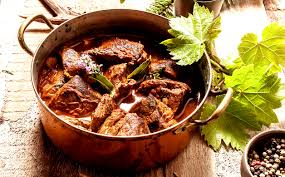 Ajouter thym + laurier + marjolaine + sel + poivre. Mélanger … Verser le bouillon. Mélanger en portant à ébullition…. . Verser le vinaigre. Mélanger. Couvrir. Laisser doucement mijoter 45 mn.