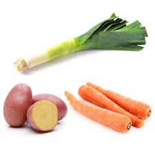 ………… Ajouter lard 1/2 sel + tous les légumes: poireaux + céleri-rave + chou-rave + carottes + navets + pommes de terre…. Couvrir à nouveau et poursuivre la cuisson 1 heure … .